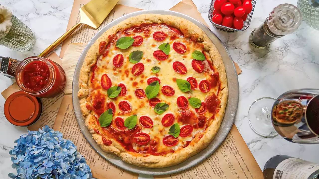 Uma pizza irresistível com mussarela, gorgonzola, requeijão e parmesão, derretidos sobre uma massa crocante.